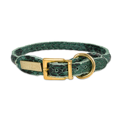 Barry King Obroża dla psa okrągła, Serpente, zielona, skórzana mosiądz, 6mm/25cm
