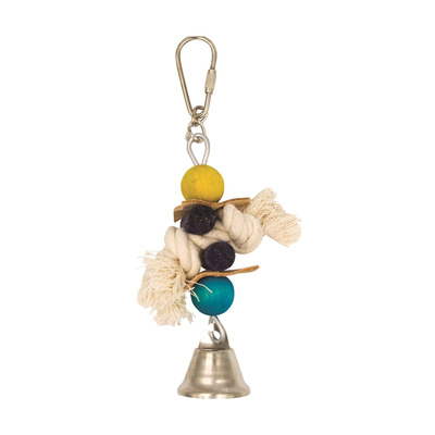 Panama Pet wisząca zabawka z drewna ze sznurkiem z koralikami i dzwonkiem 22 cm