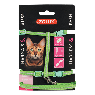 ZOLUX Zestaw spacerowy dla kota smycz i szelki kol.zielony
