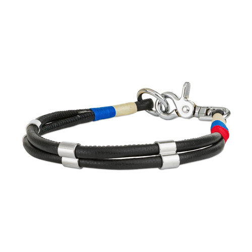 ( ilość produktów: 3914 )Barry King Obroża linowa, S: 46 cm/6 mm, czarny, wstawki niebieskie/czerwone
