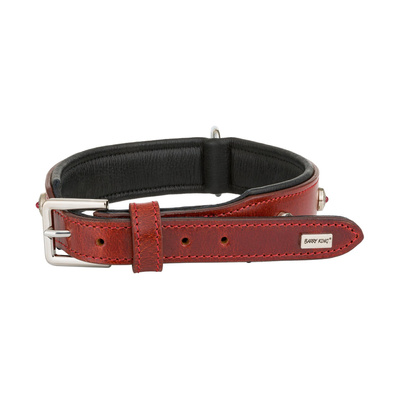 Barry King Obroża skórzana, M: 43-50 cm/34 mm, czerwony/czarny