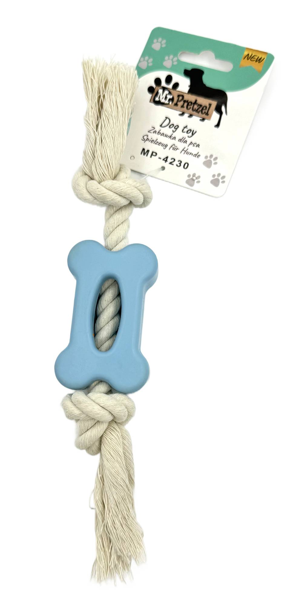Zamów już dziś Mr. Pretzel Gryzak gumowy Kość ze sznurem i spraw, by Twój pies cieszył się każdą chwilą spędzoną na zabawie!